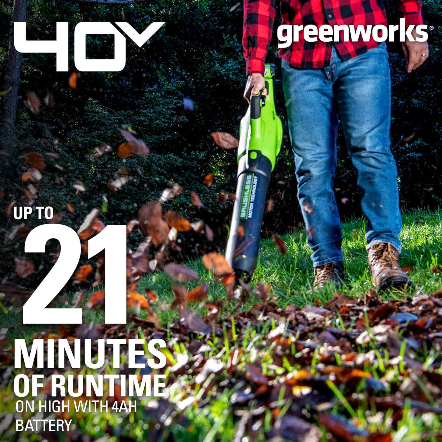 Greenworks 40V Cordless Brushless Axial Leaf Blower: Powerful Brushless Motor for Maximum Efficiency