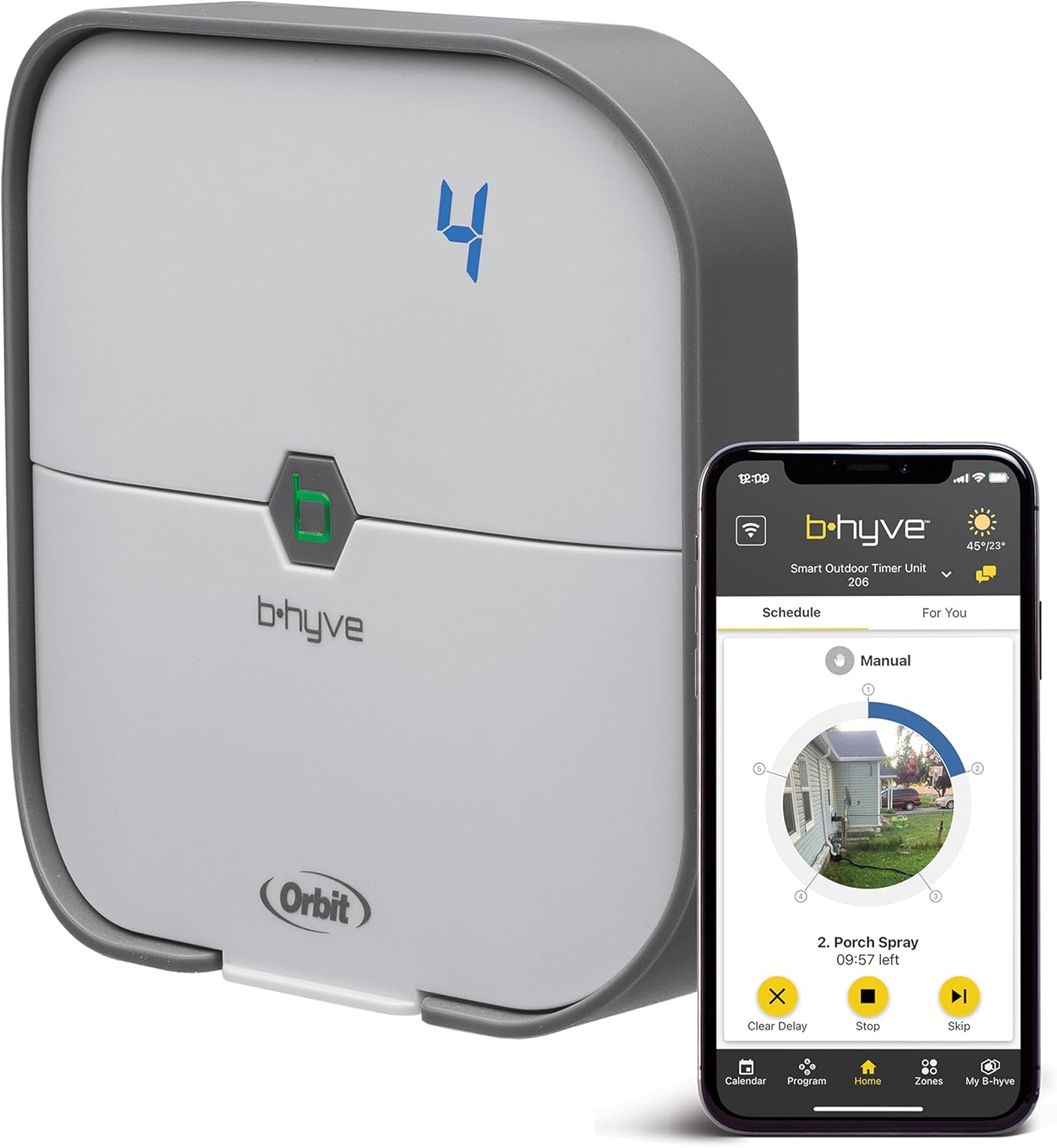 1. Orbit 57915 B-hyve 4-Zone Smart Sprinkler Controller with WiFi app control for indoor irrigation system